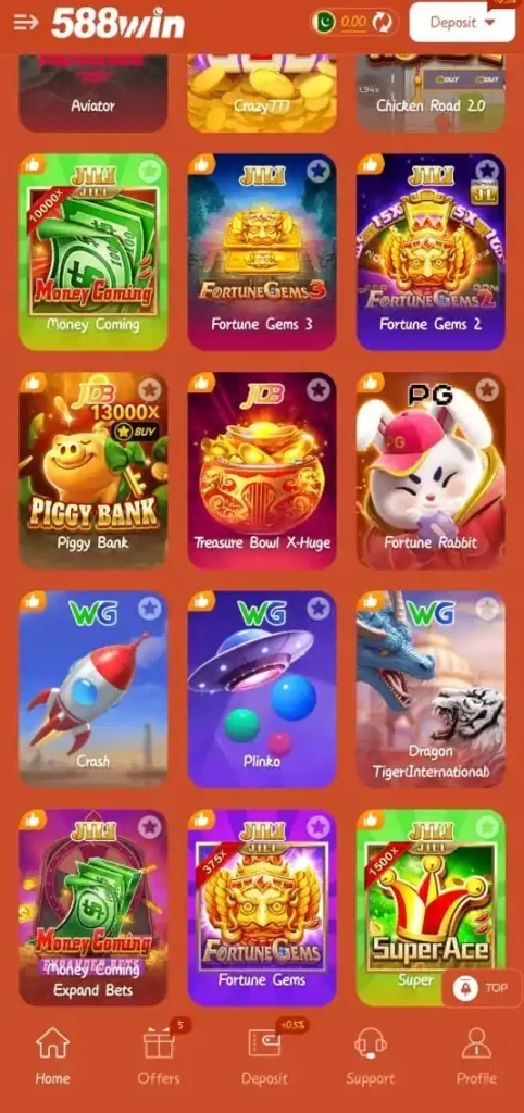 Variety of Games in the 588Win Game Real Earning App